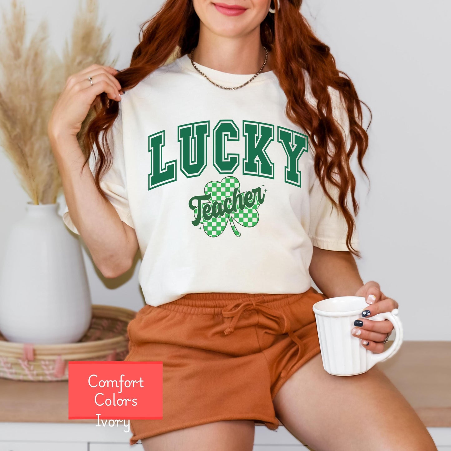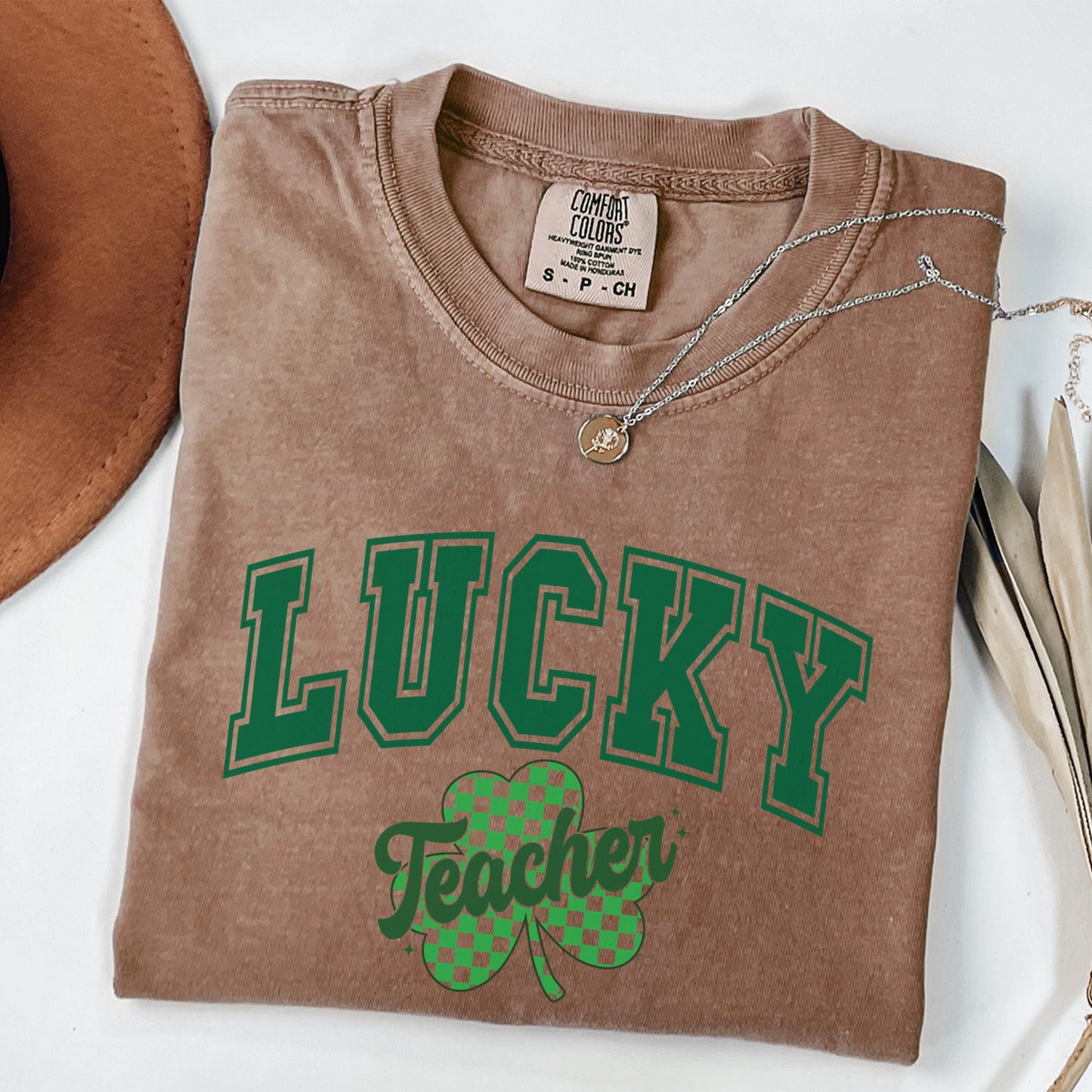 Comfort colors lucky shirt for teacher, St Patricks day tee, shamrock tshirt, st paddys elementary teacher tshirt, sped team shirt