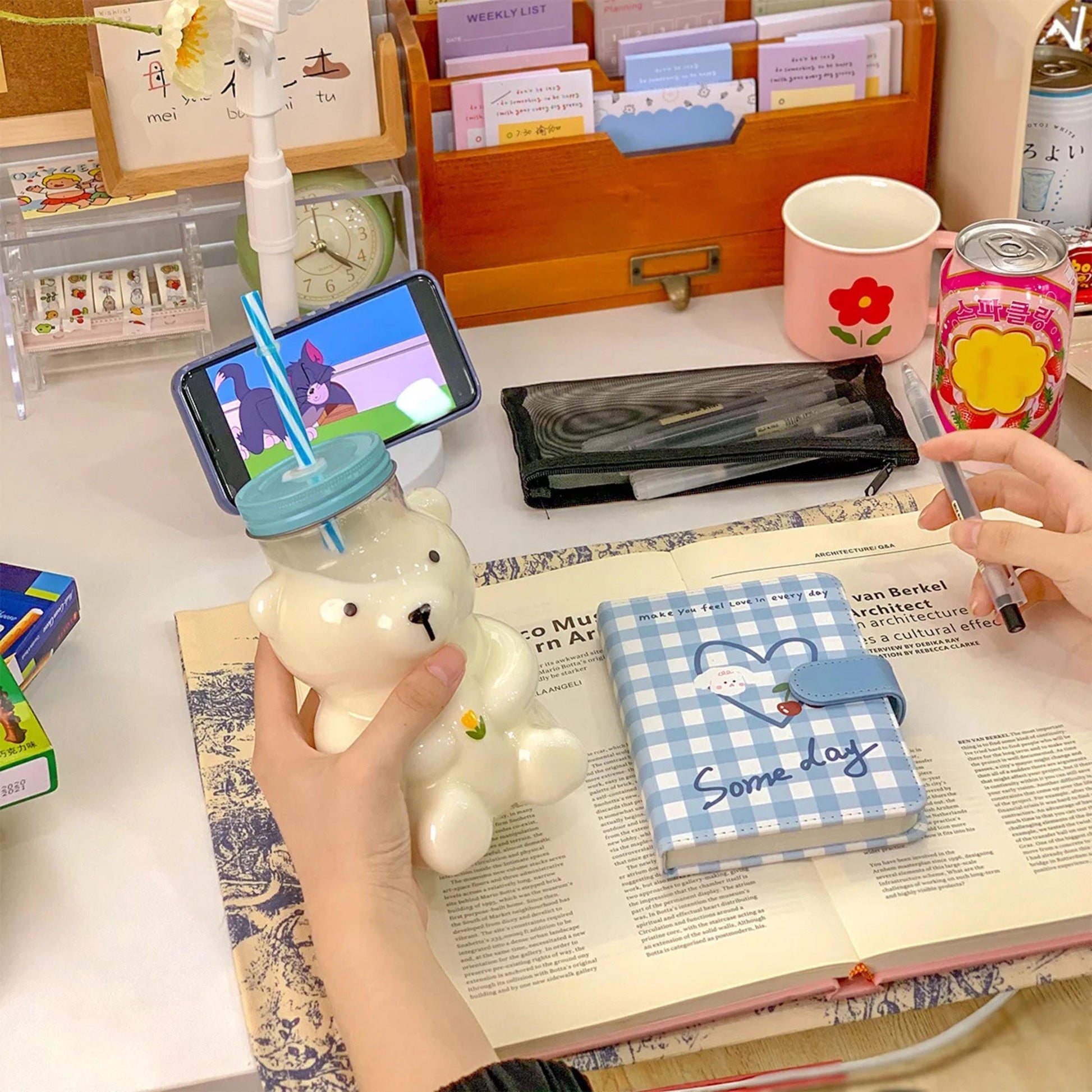 Custom Bear Shaped Coffee Cup, Personalized Bear Glass Mug, Engraved Iced Coffee Cup with Straw, Cute Animal Coffee Mug, Coffee Lovers Gift