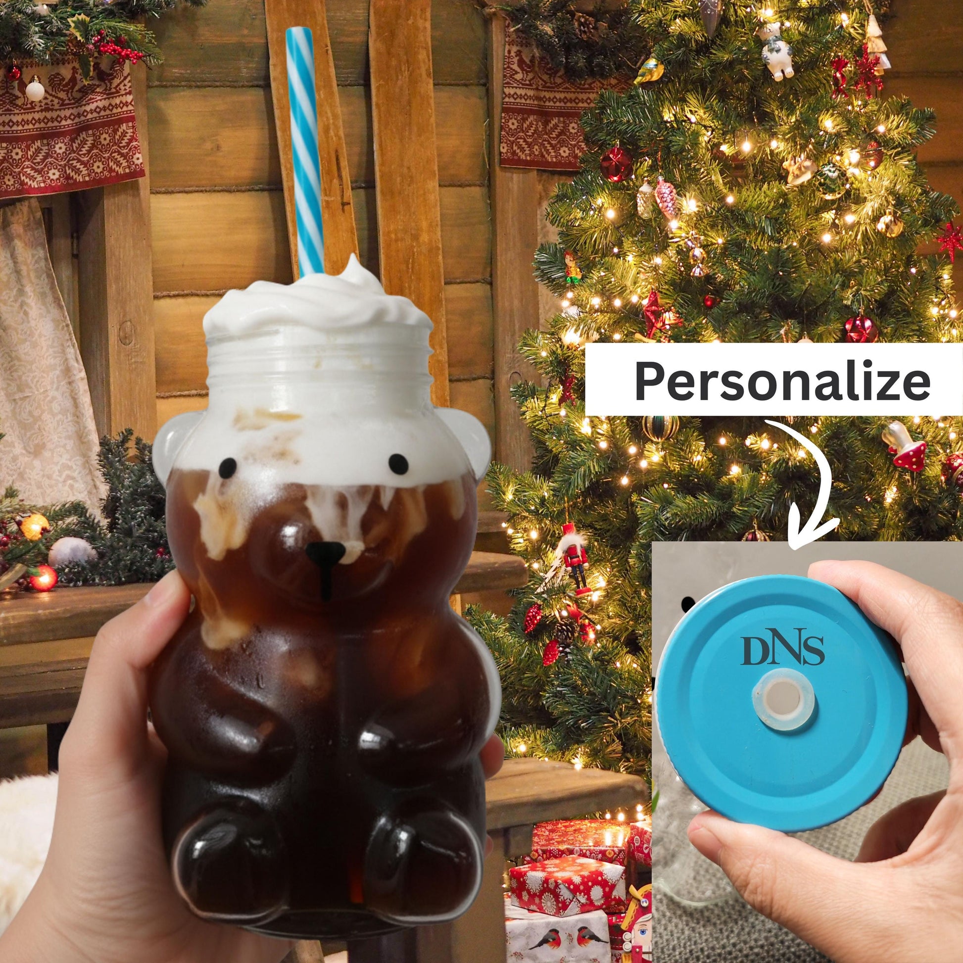 Meet your new favorite iced coffee cup! This adorable glass bear tumbler is cute, functional, and now fully customizable — engrave the lid with a name, initial, monogram, or your own design for the ultimate personalized gift.