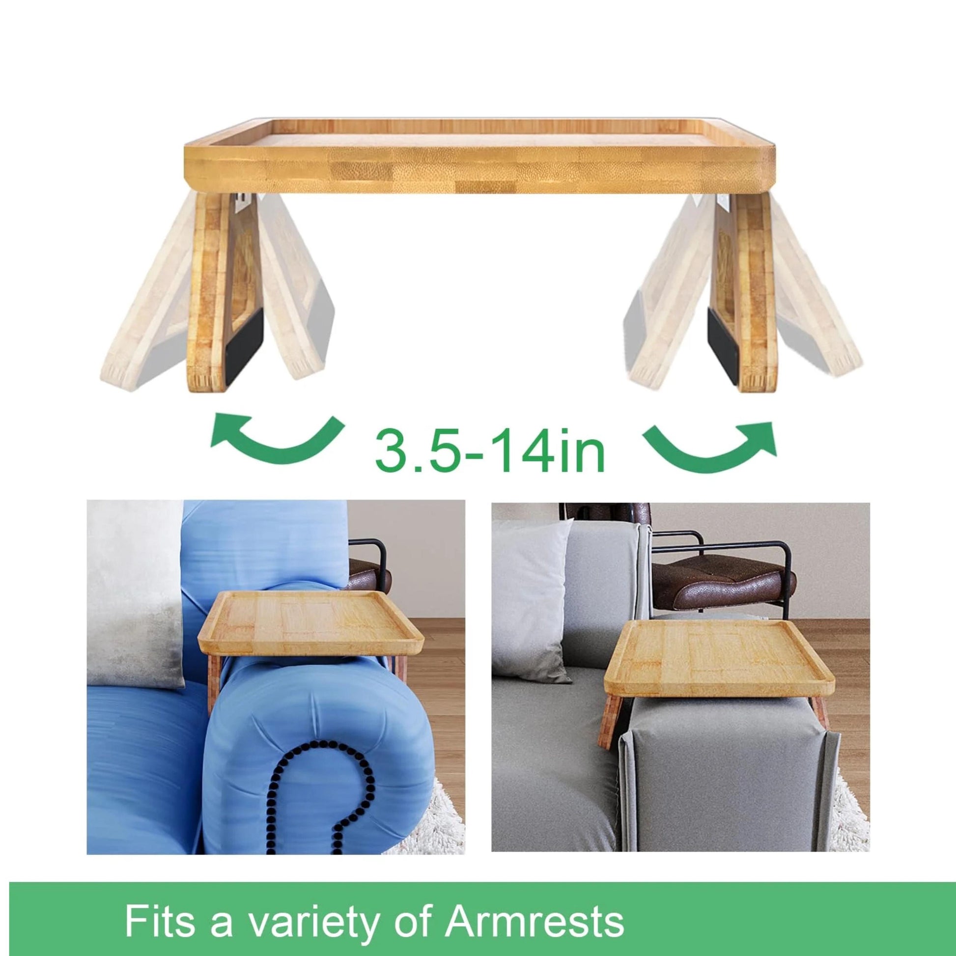 Custom Engraved Wooden Sofa Armrest Tray, Personalized Couch Arm Table for Drink & Snack, Foldable Couch Tray, Gift for Couple Home Lovers