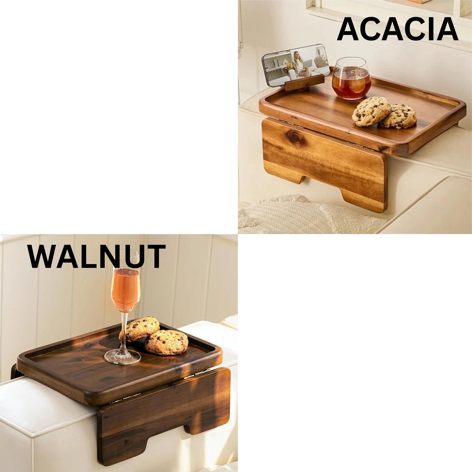 Transform your couch into a cozy, functional space with this custom engraved wooden sofa armrest tray. Designed to slide neatly over most armrests, it instantly creates a stable surface for your coffee, tea, snacks, remote, or even a book—all without leaving the comfort of your seat.