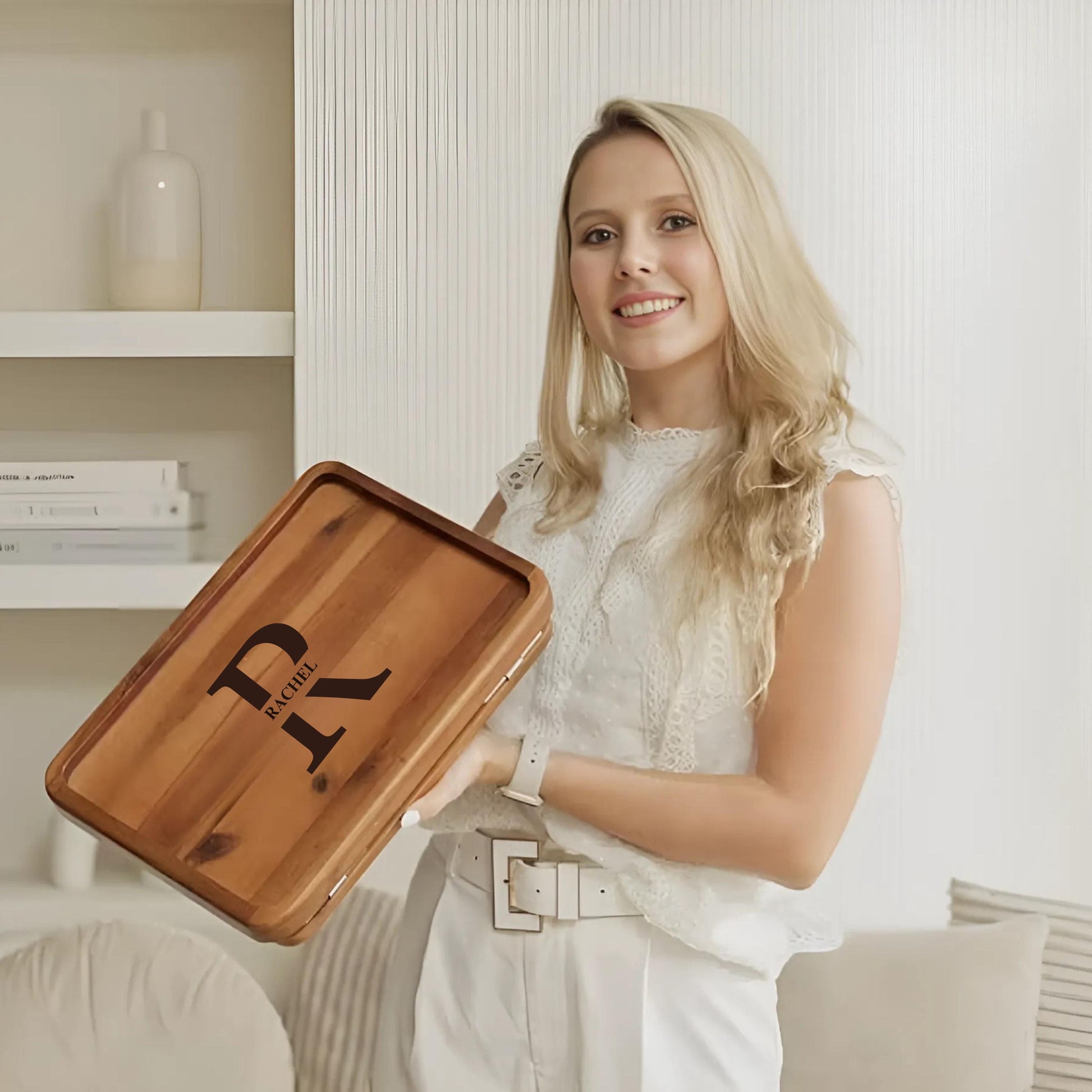 Handcrafted from acacia, walnut, or bamboo, each tray combines durability with natural beauty. Personalize it with a family name, initials, or meaningful text to make it uniquely yours. It’s more than just practical—it’s a timeless home accessory that blends convenience with elegance.