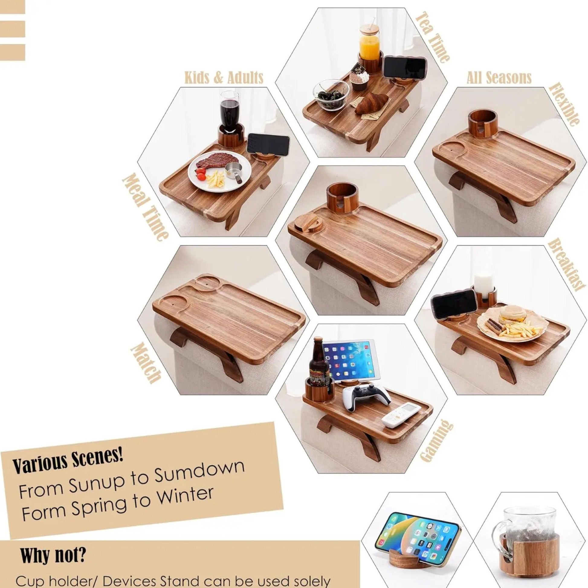 Upgrade your lounging experience with this custom engraved wooden armrest tray, designed to fit snugly over your sofa or couch arm. Crafted from your choice of acacia, walnut, or bamboo wood, this functional yet stylish tray is perfect for holding drinks, snacks, remotes, or even a book while relaxing.