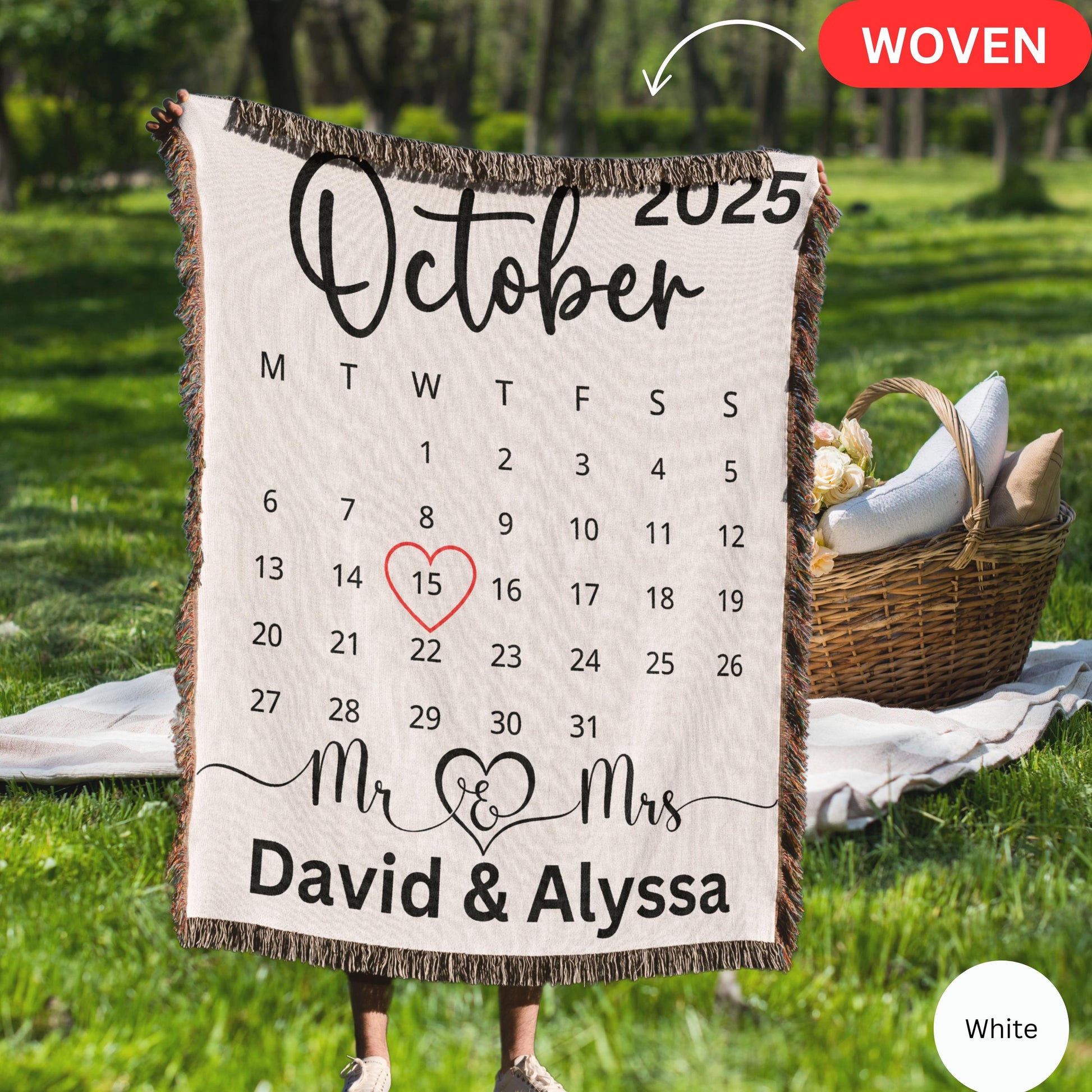 Mr mrs woven blanket, custom wedding gift for bride, married calendar gift, personalized wedding Keepsake, Mr & Mrs blanket, bridal shower
