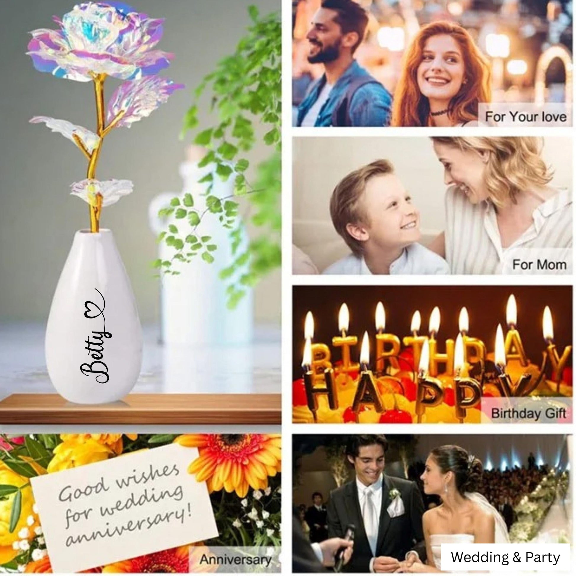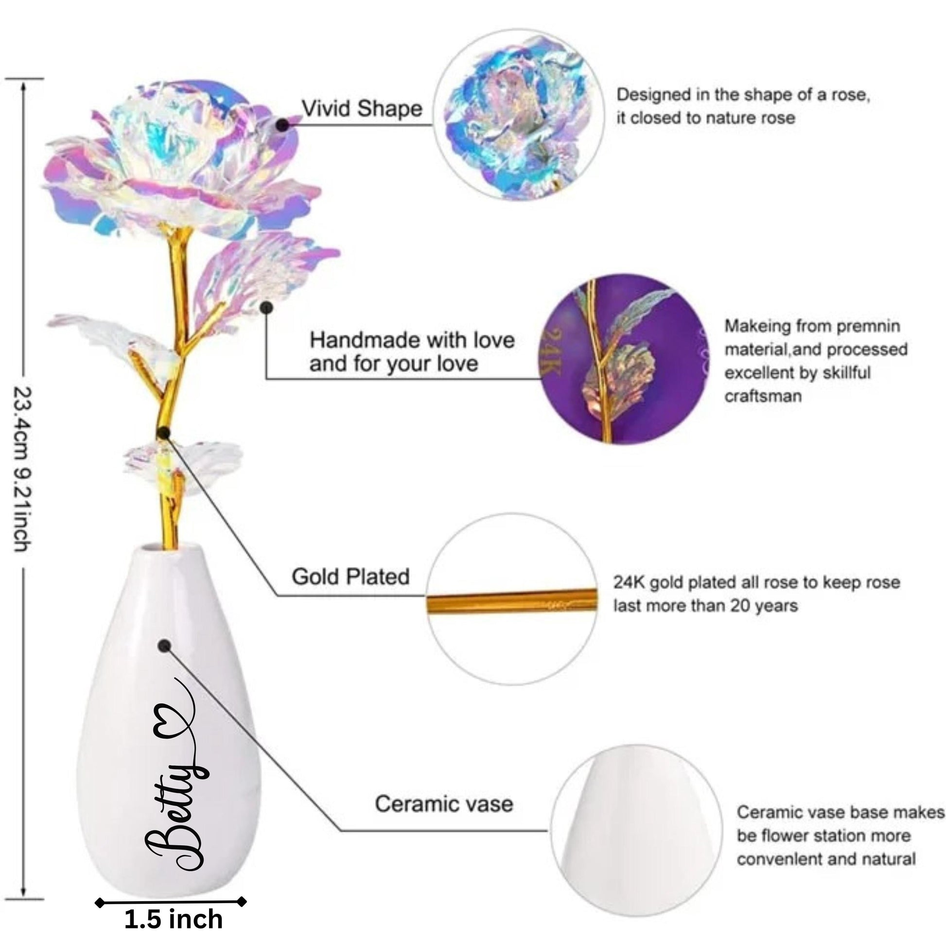 Personalized Artificial Rose Flower with Vase, Mothers Day Mom Gift, Custom Wife Gift, Girlfriend Appreciation, Anniversary Rose Flower