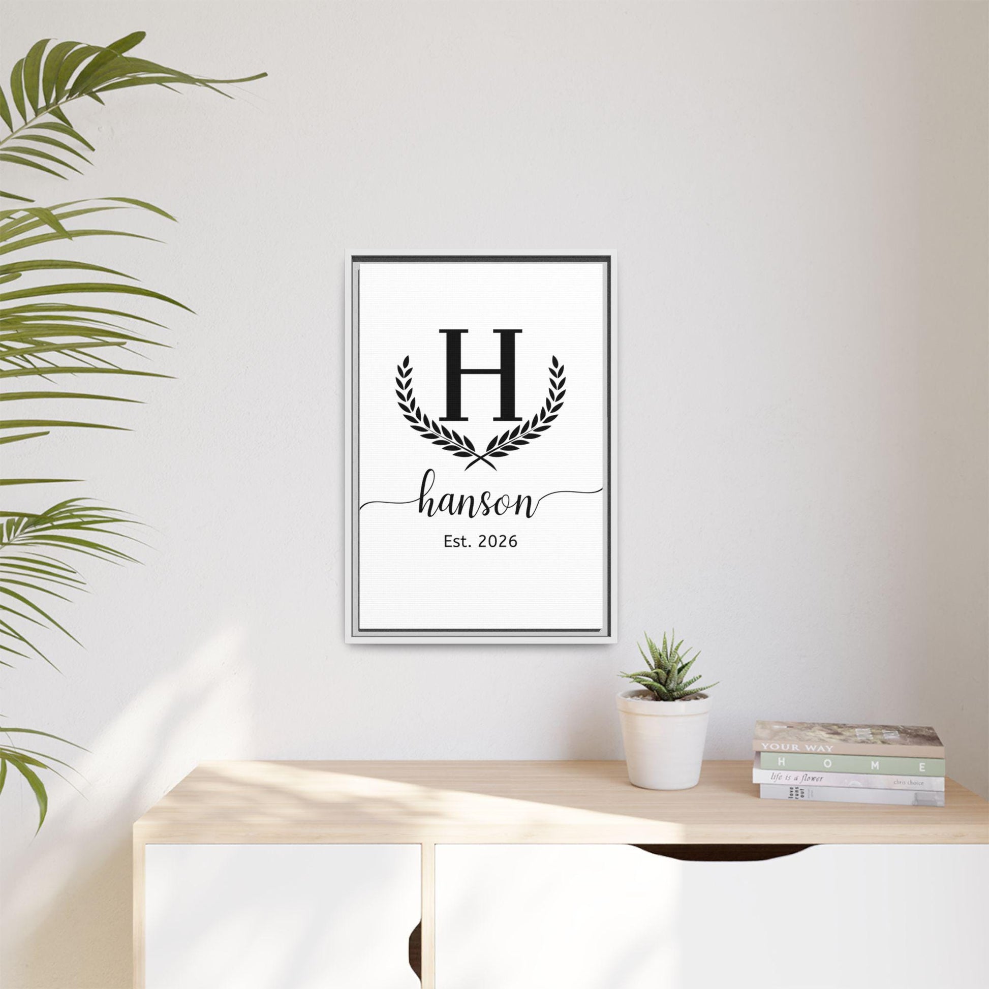 Celebrate your family story with this custom family name wall canvas, featuring your initial, last name, and established year in an elegant minimalist design. Each piece is printed on a premium cotton-polyester canvas and framed in eco-friendly pinewood — a perfect blend of timeless beauty and sustainability.