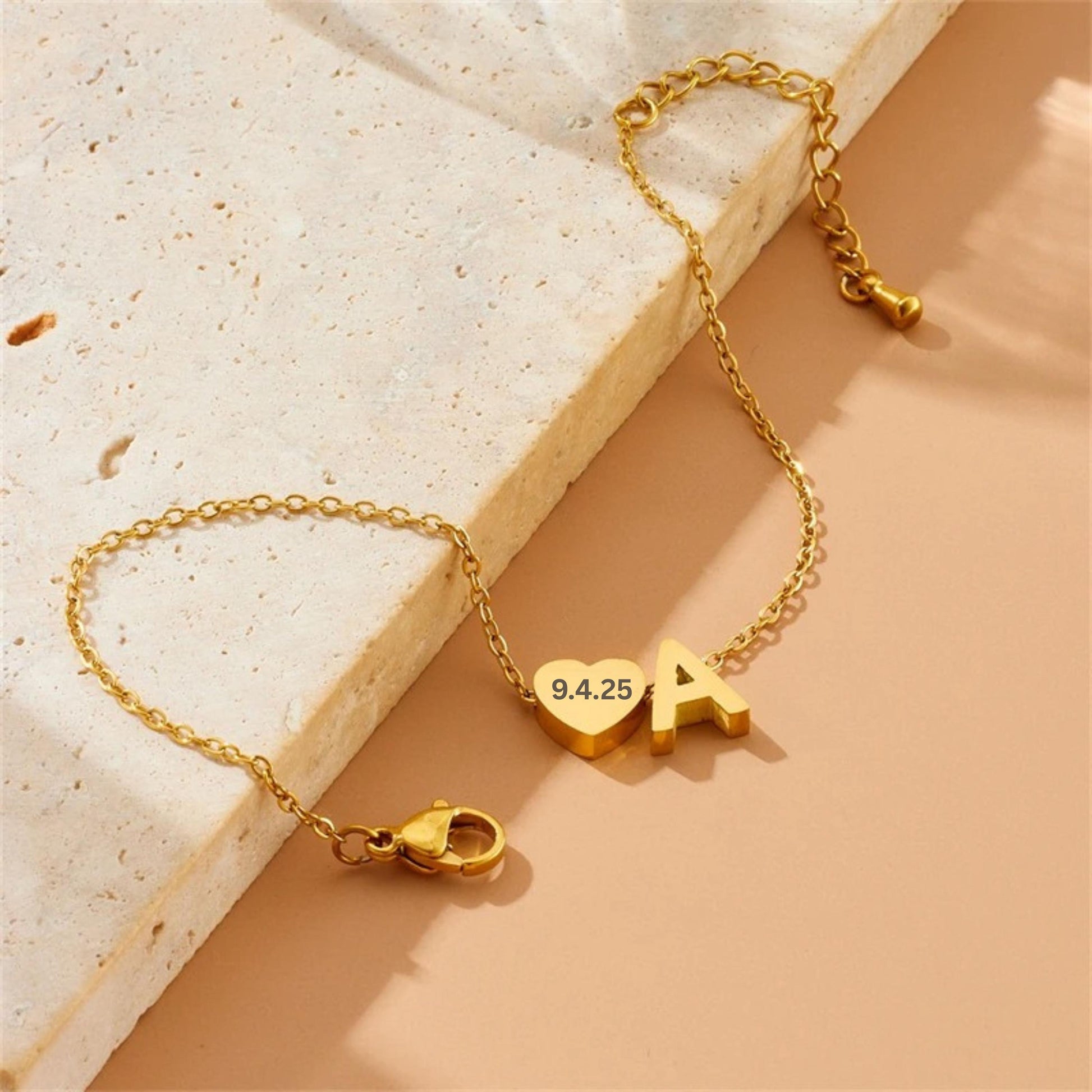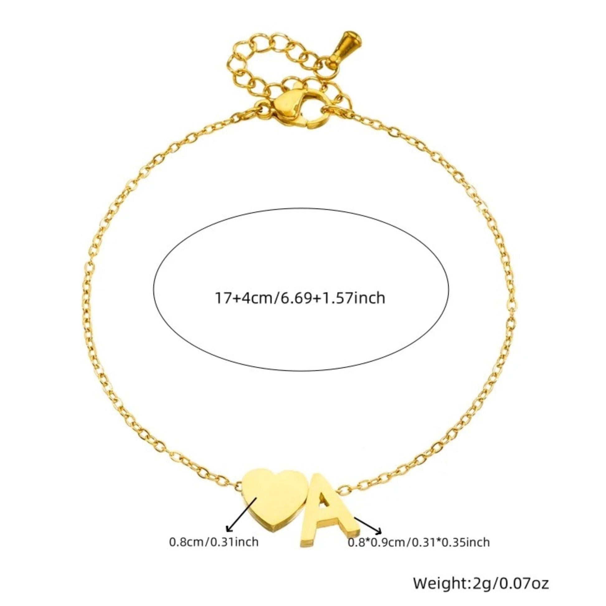 Personalized Initial Bracelet, Custom Initial Charm & Engraved Heart Pendant, Name Bracelet, Dainty Jewelry, Custom Gift for Her