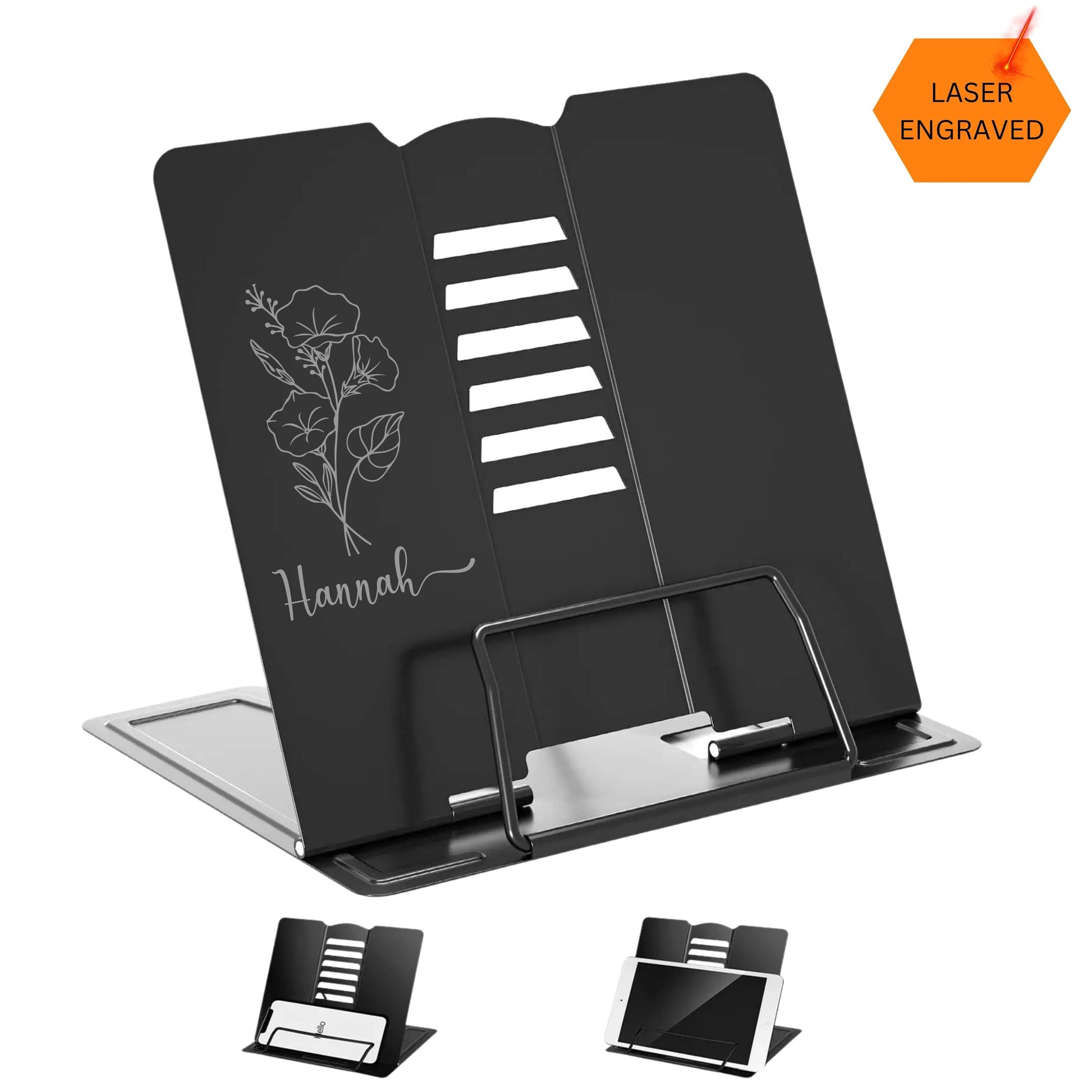 Personalized Metal Book Stand, Custom Engraved Cookbook Holder, Bible Stand, Adjustable Recipe & Reading Holder, gift for book lover student