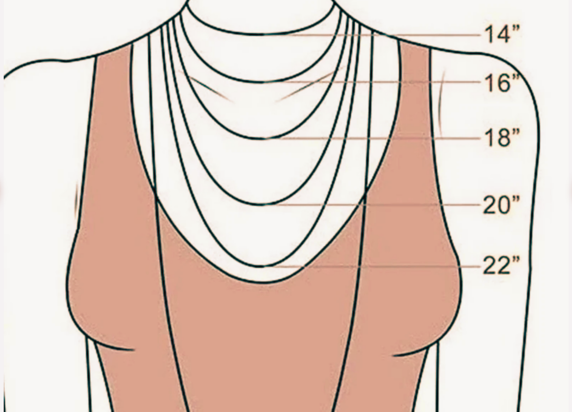• 18" (45 cm): Falls just below the throat at the collarbone- a popular length for adding pendants which will hang over a crew neck.