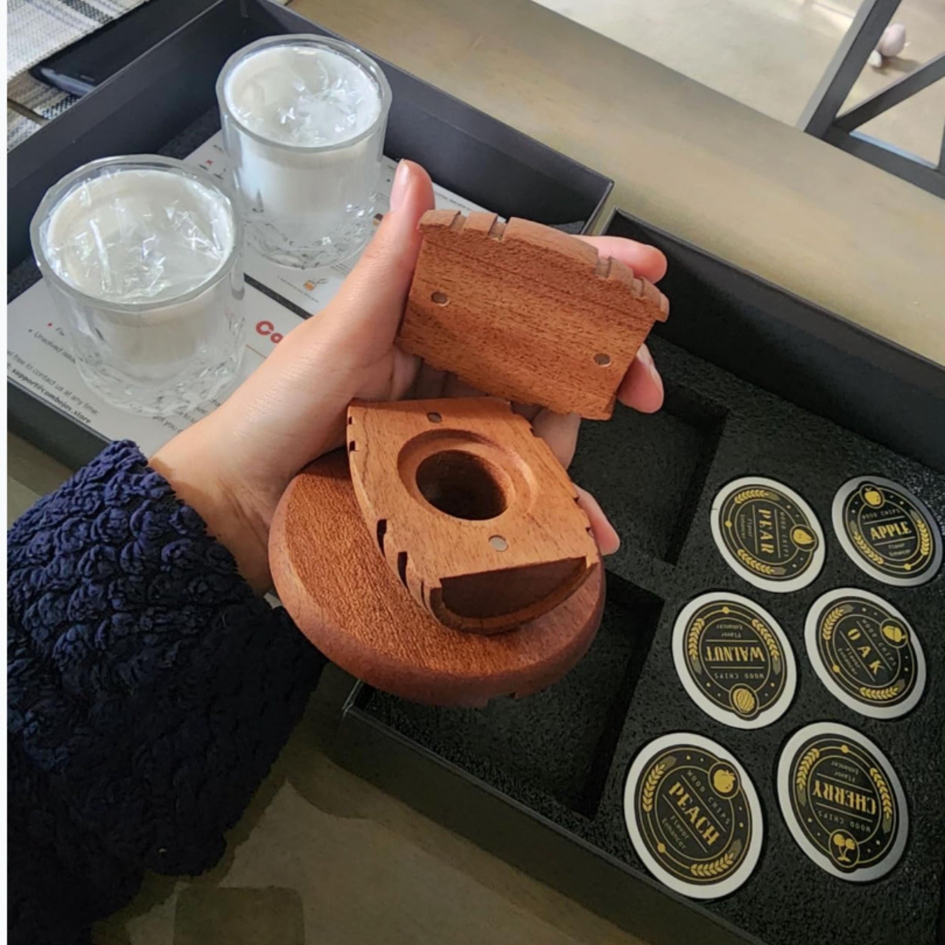 Custom Engraving: Add a name or initials on the wood smoker lid (e.g., GEORGE, DAD’S BAR, or THE WHISKEY DEN)