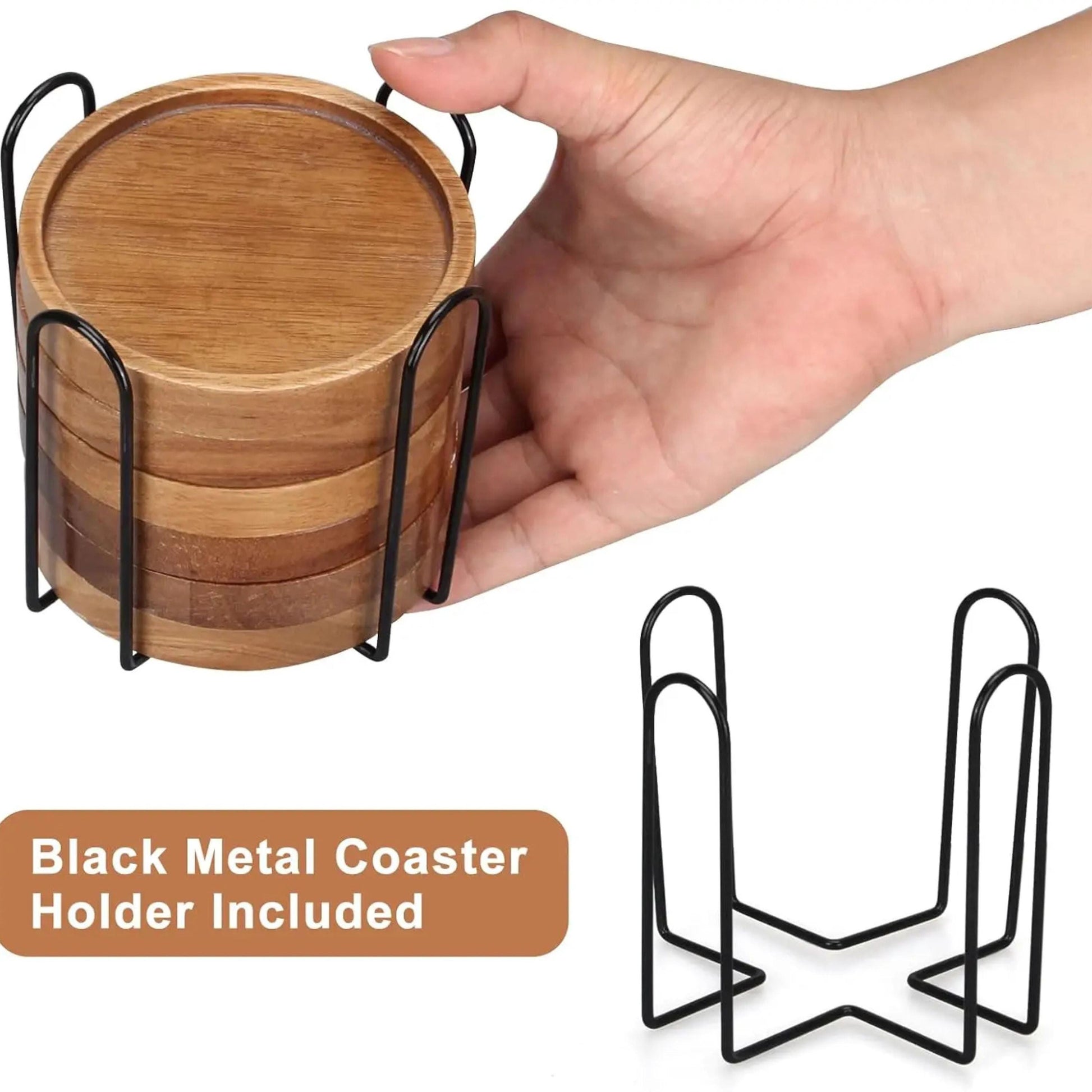Personalized Wooden Coaster Set with Metal Holder, Custom Engraved Drink Coaster for Home, Wedding Gift, Housewarming Gift, Rustic Bar Decor
