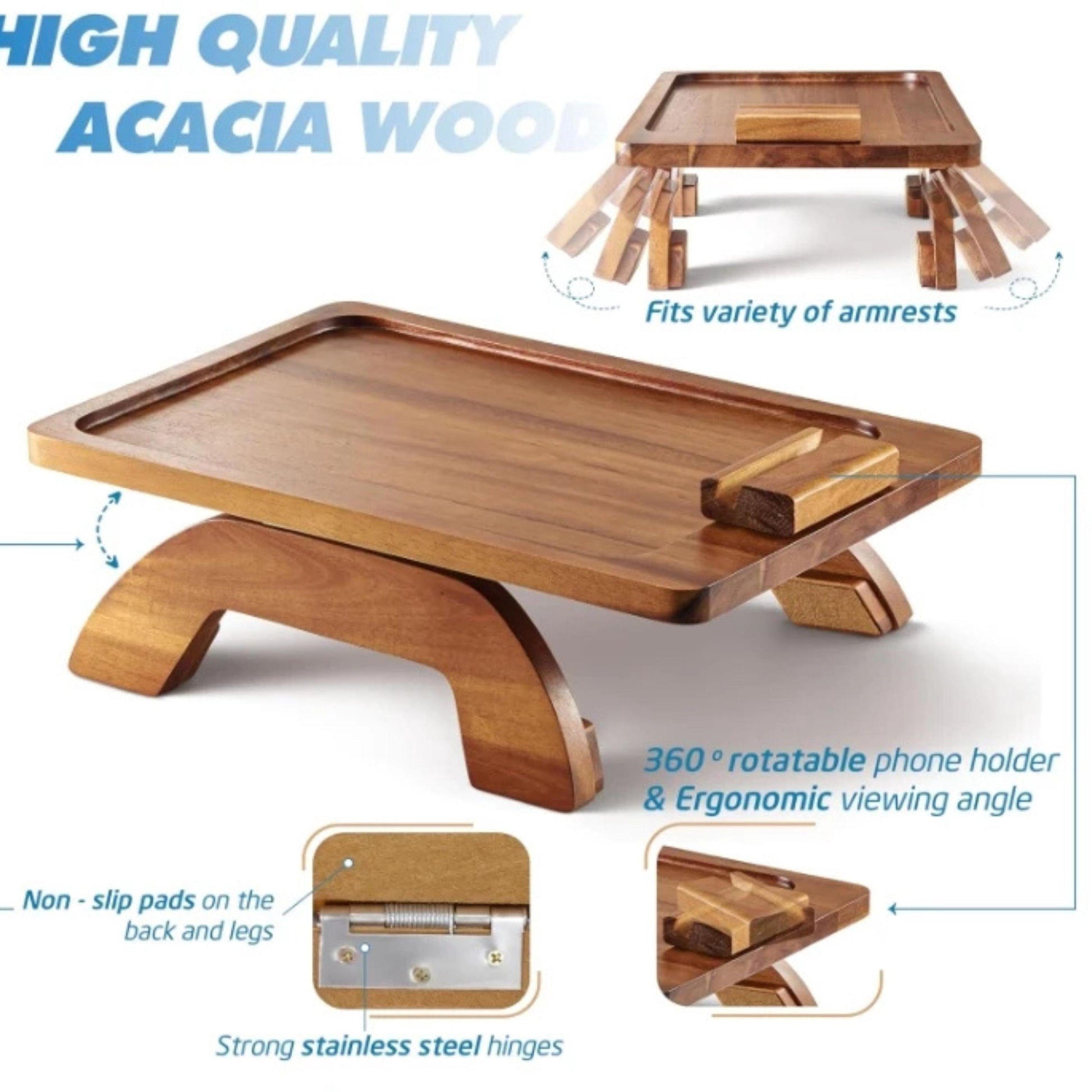 Relax in style with this custom engraved wooden sofa armrest tray, available in Bamboo, Acacia, or Walnut finishes. Designed with a built-in phone holder slot, this tray turns your couch arm into a convenient mini table — perfect for drinks, snacks, remotes, or hands-free scrolling.