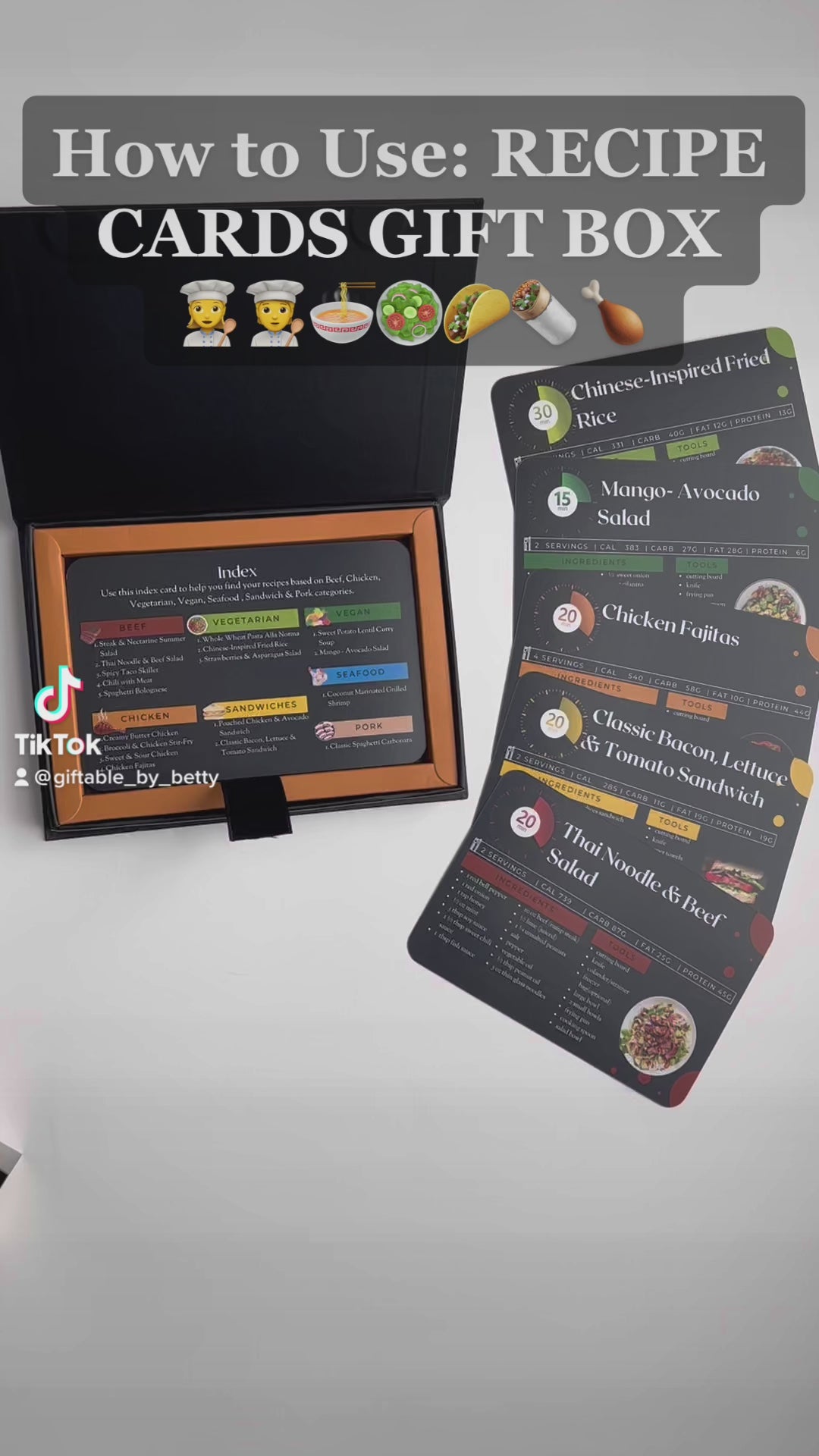 4x6 Double Sided Recipe cards and Box Set- 18 Meal Prep Cookbook flashcards & 17 Blank recipe cards and gift box set