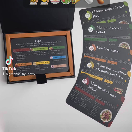 4x6 Double Sided Recipe cards and Box Set- 18 Meal Prep Cookbook flashcards & 17 Blank recipe cards and gift box set