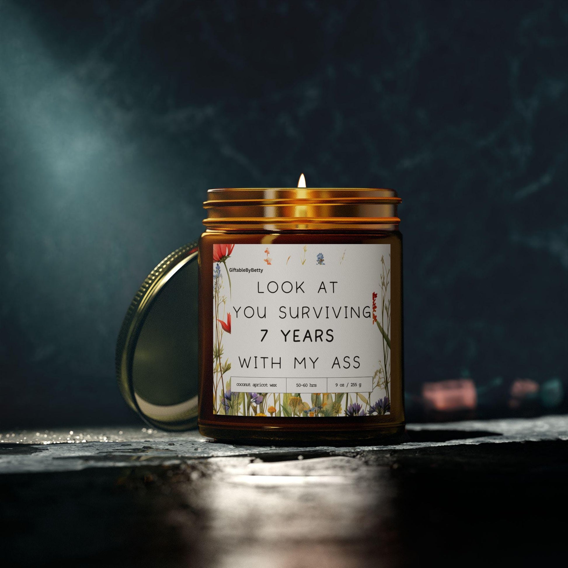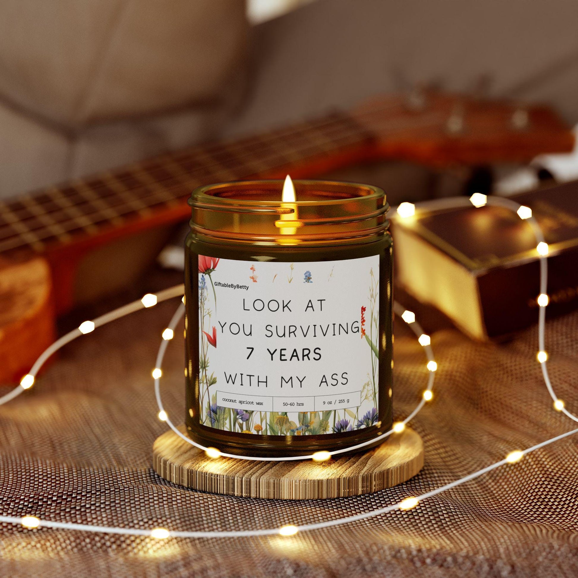 Seventh Year Anniversary Candle, Funny 7 Years Married Anniversary Gift for Husband, 7 year marriage gift for hubby, 7 Years Friendship