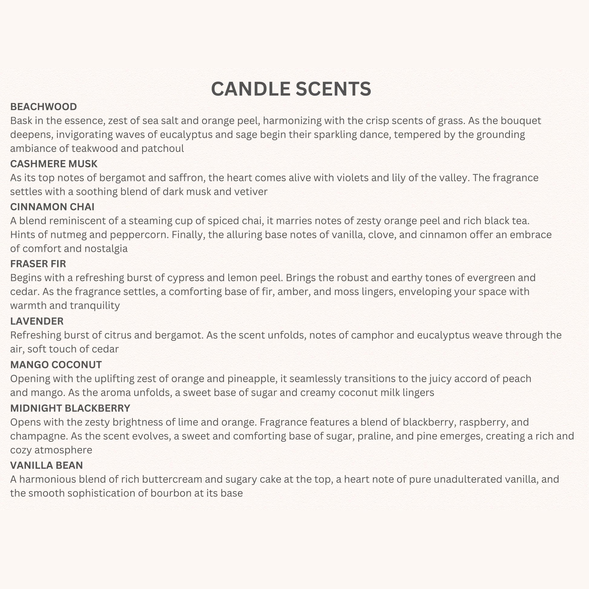 Made from premium coconut apricot wax with cotton wicks that are lead and zinc-free.