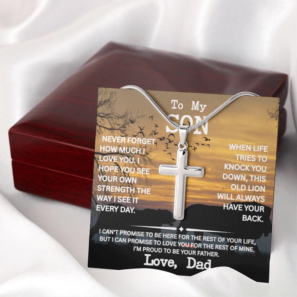 Son Cross Necklace from Dad- "Never Forget" Necklace