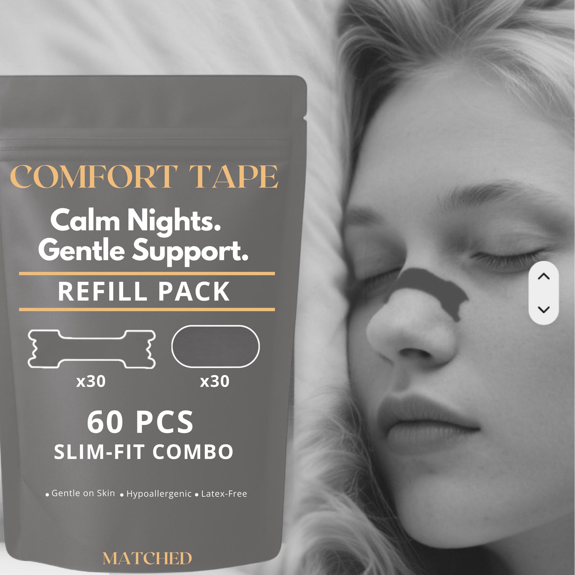 Our Comfort Tape is designed for people who want to feel good throughout the day and night — whether you’re hitting the gym, running errands, or winding down for bedtime.Made with gentle, hypoallergenic adhesive and latex-free materials, these strips are soft, flexible, and breathable. Perfect for sensitive skin, they stay comfortably in place during exercise, daily tasks, or while you sleep — supporting your routine from sunrise to bedtime.