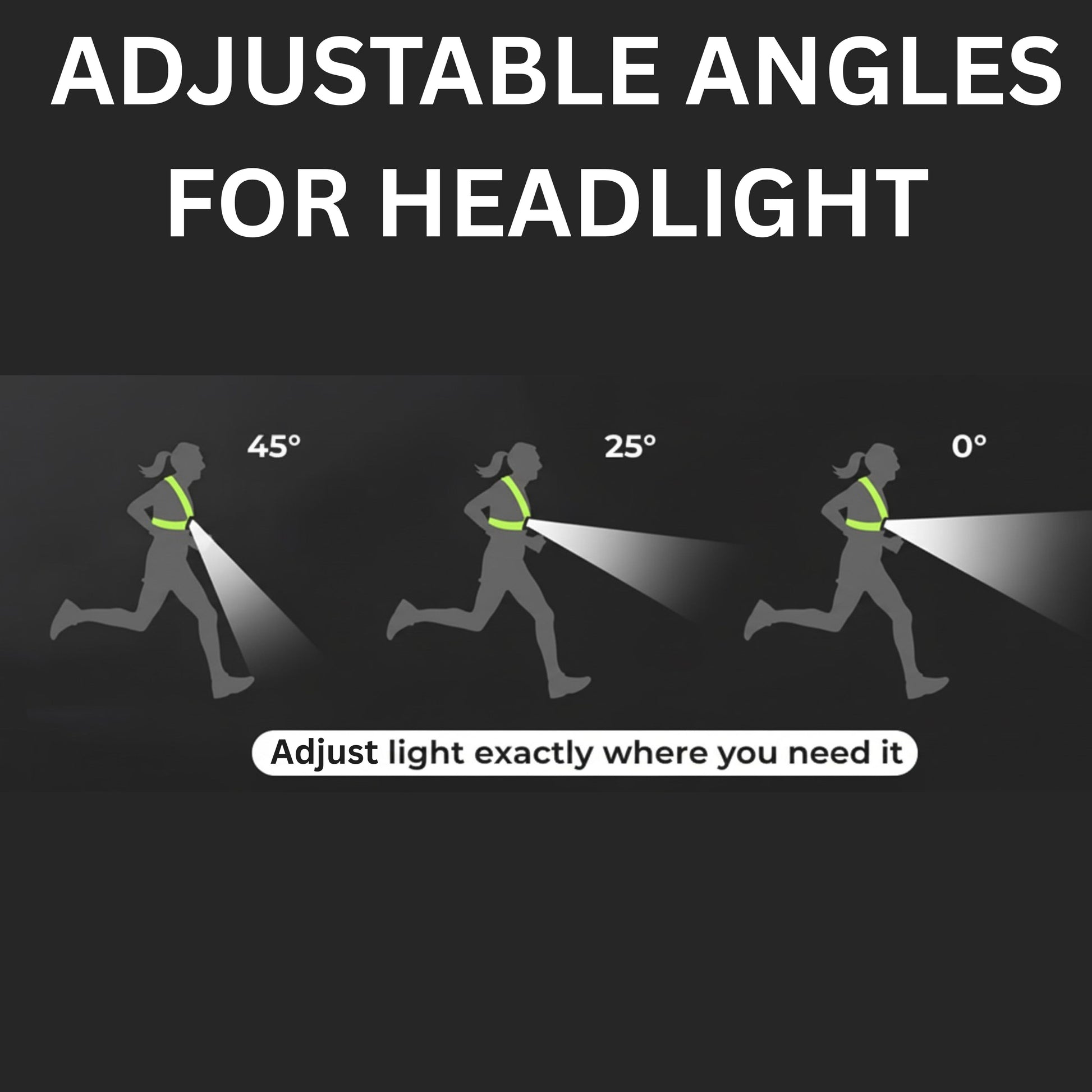 Adjustable Headlight: Direct light exactly where you need it with a 45° adjustable beam angle.