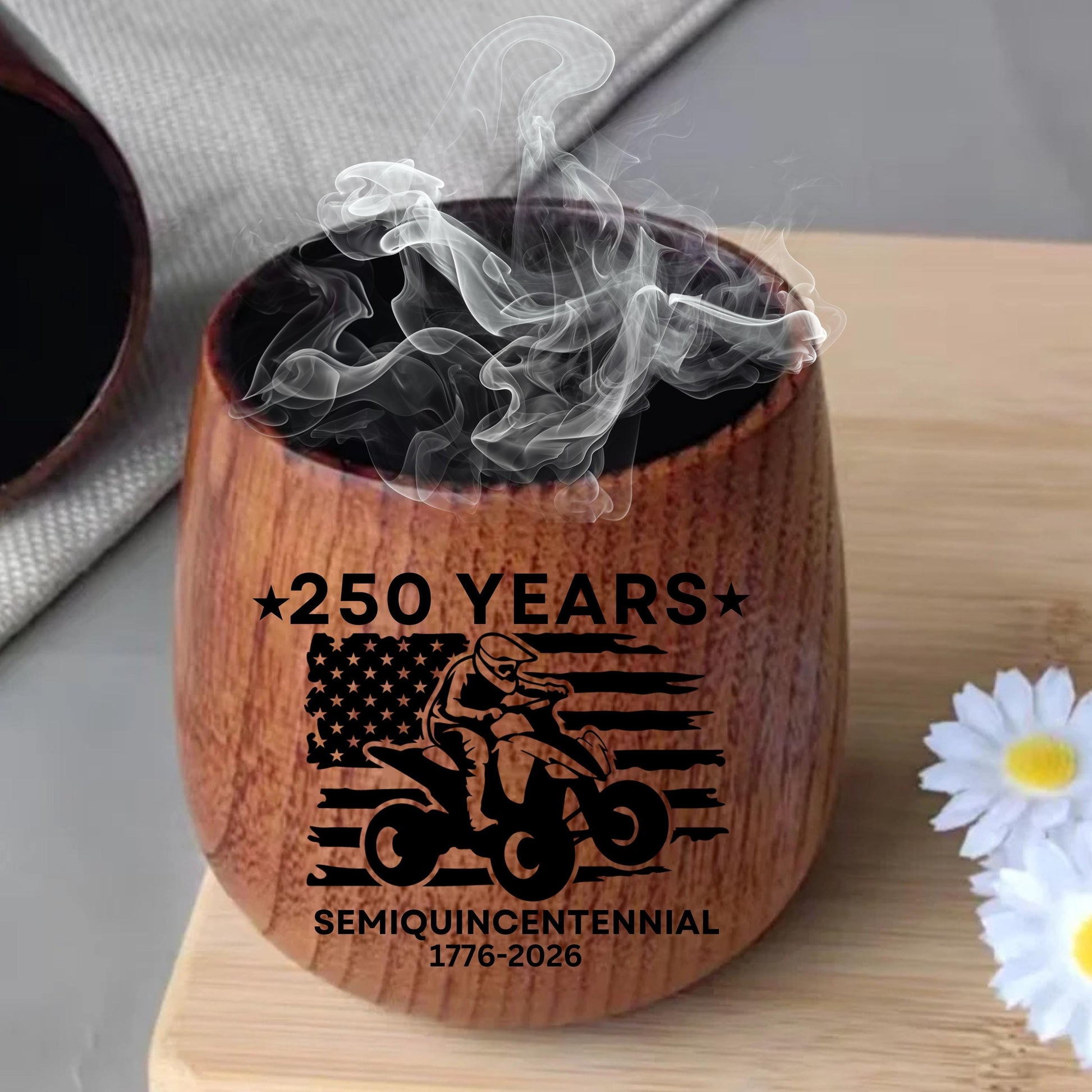 Celebrate 250 years of American spirit with this handcrafted charred wooden bourbon glass, a stunning keepsake honoring the nation’s Semiquincentennial. Each cup is precision-engraved with a patriotic design — from soaring eagles to bold flags — making it the perfect collectible for whiskey lovers, veterans, or proud patriots.