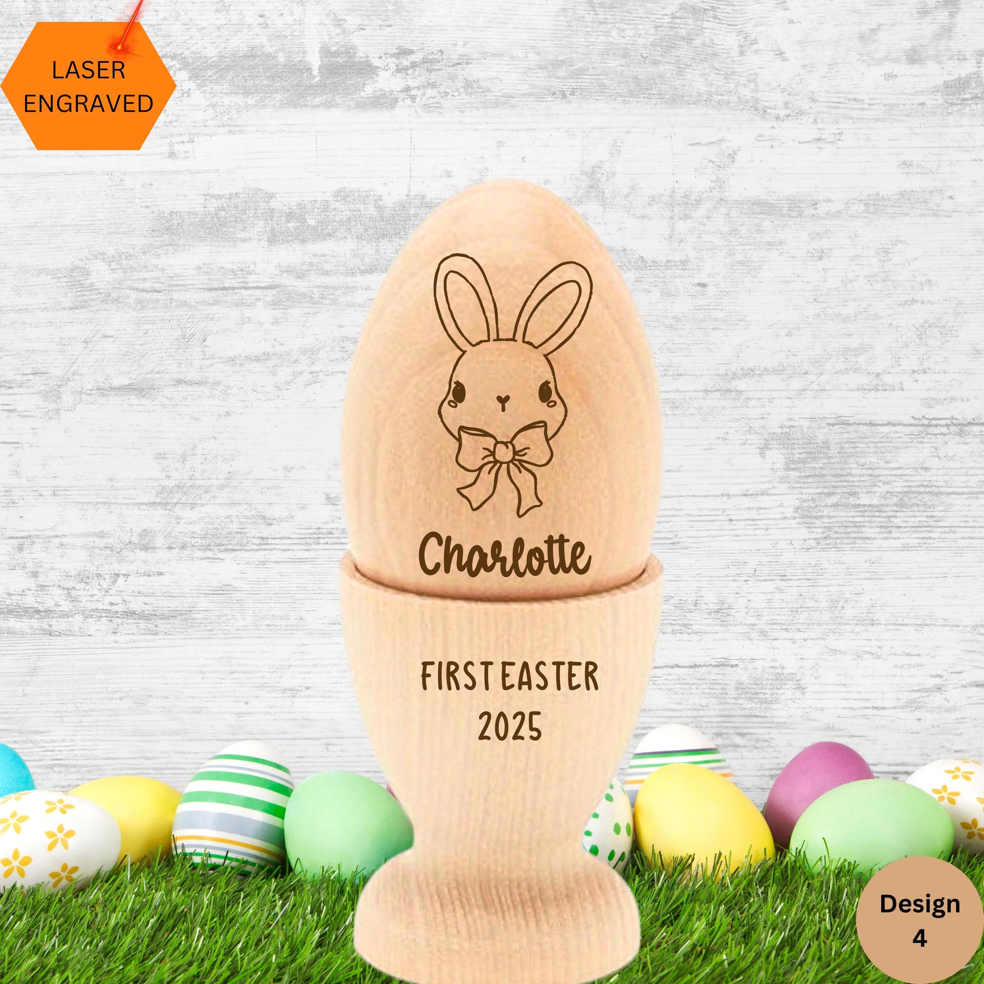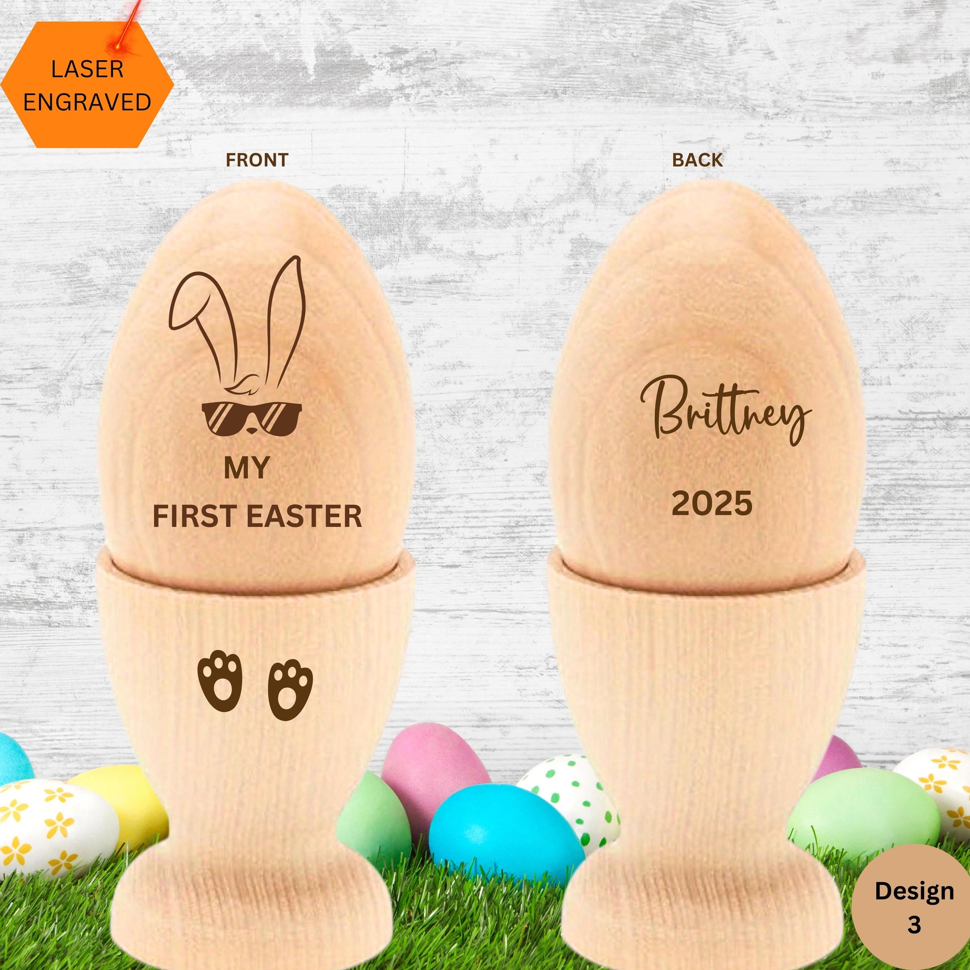 Wooden Easter Egg Custom, Personalized Bunny Ears wood egg, Engraved Wooden Egg, Easter egg hunt, Baby's First Easter Gift Basket Filler